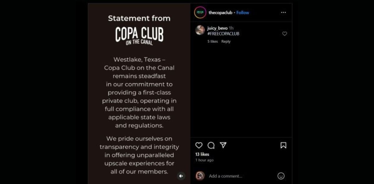 The raid occurred at the Copa Club, a venue hosting private dining and card game events. The club is located at 63 Tarragona Drive, near the northern edge of Westlake and 114.